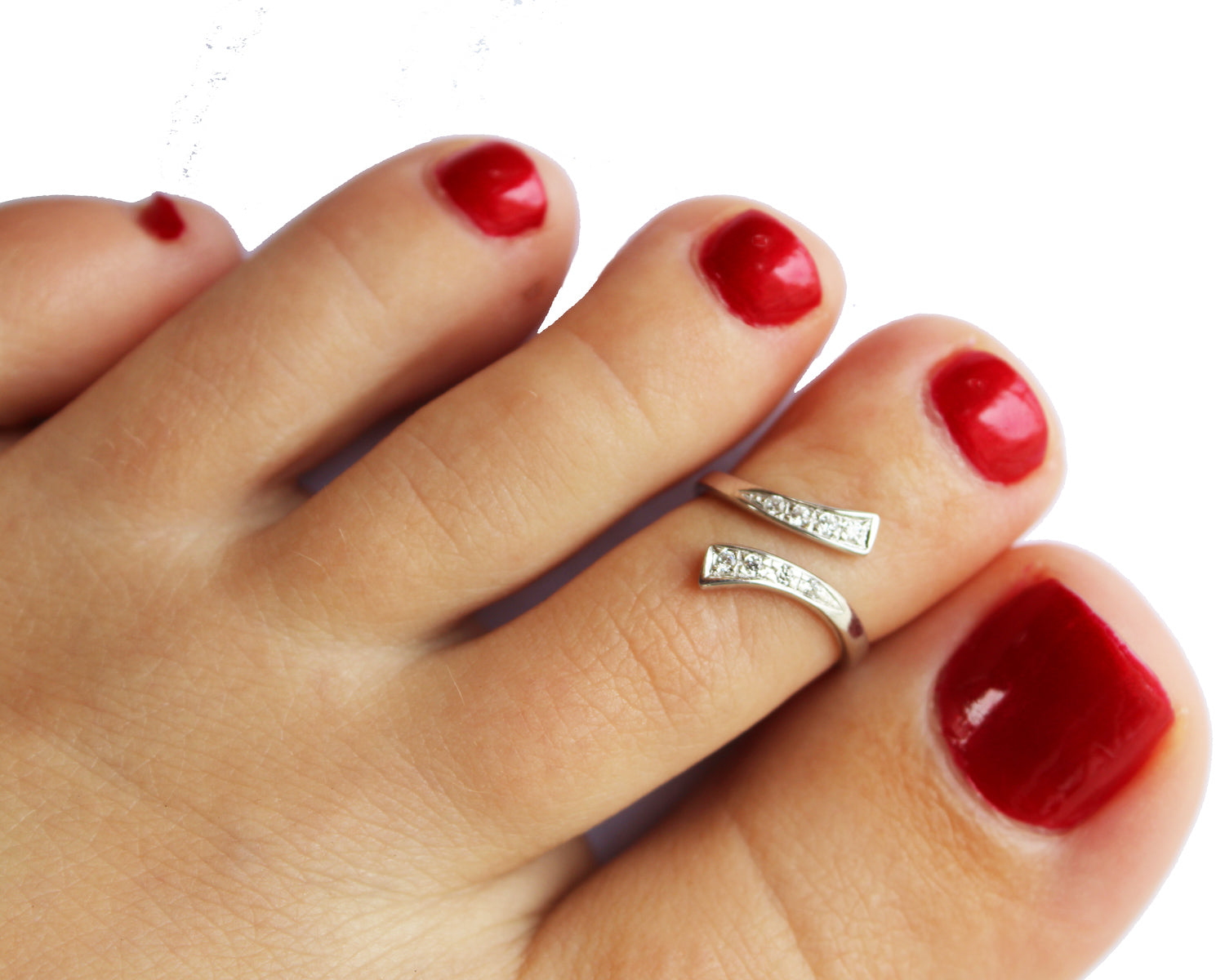 A best-seller. This comfortable 925 sterling ring wraps around and snugs against the toe. A really great look! One size fits all.