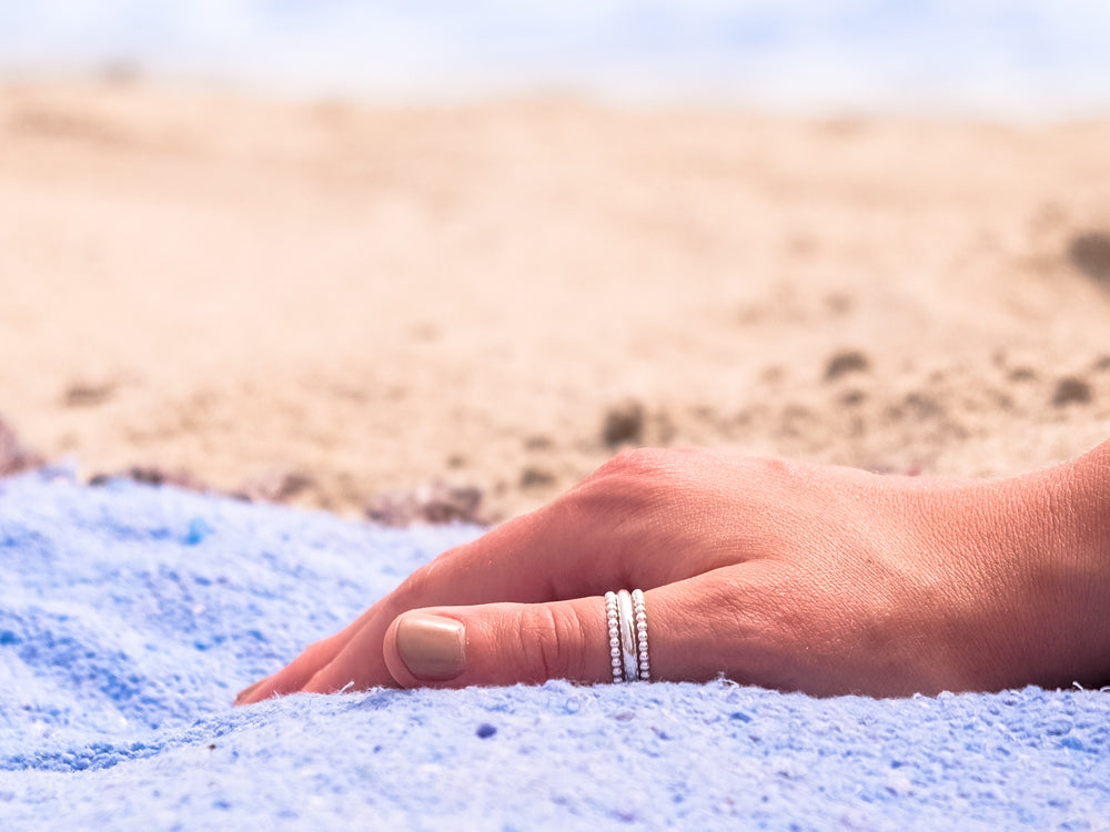 A solid set of three individual stacking sterling silver thumb rings: two bee bands and one 3mm band. When you buy a stack, you save 10% off of individual prices. Finest .925 Sterling Silver. Large range of unisex sizes available, 4 - 12.
