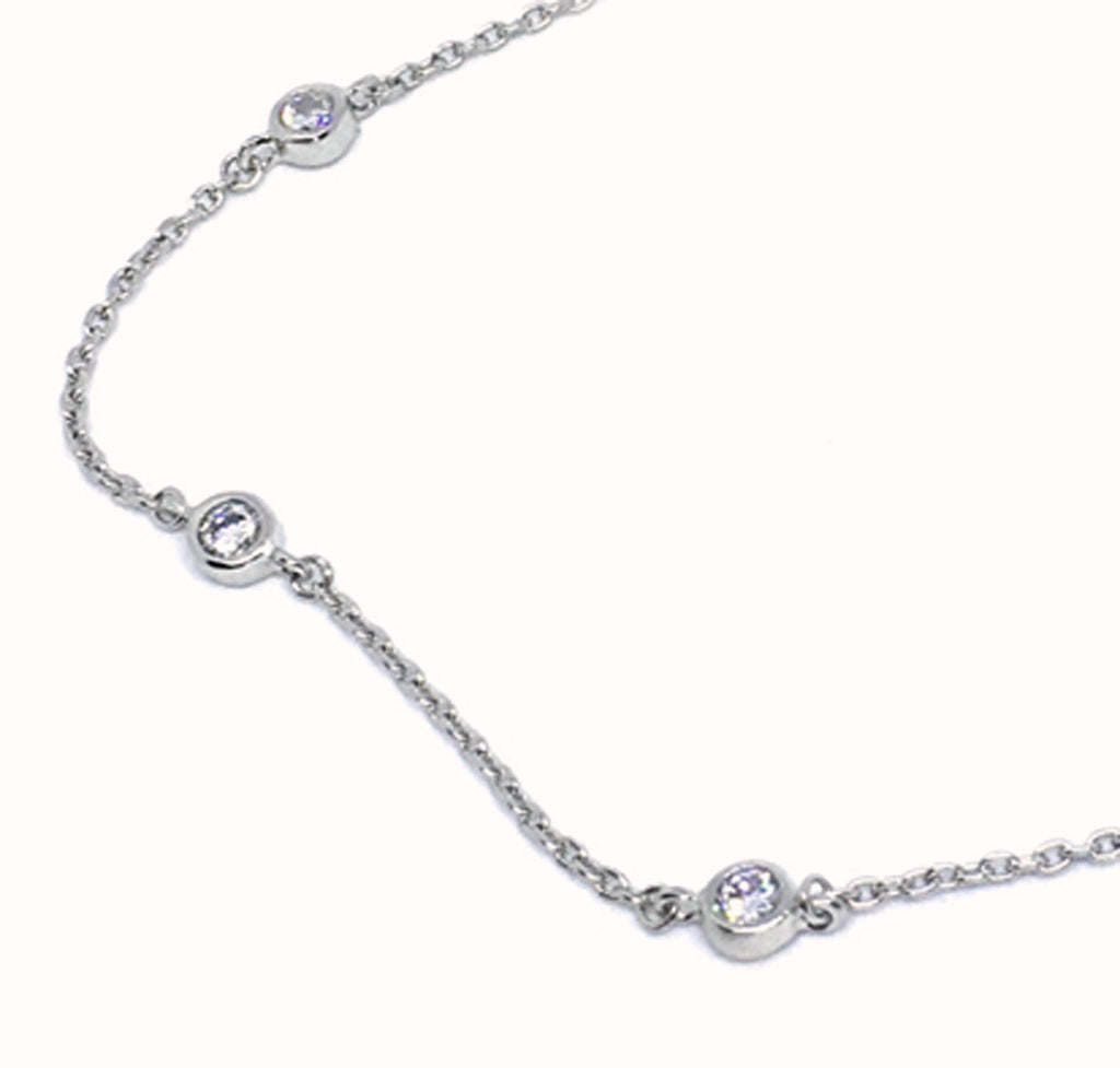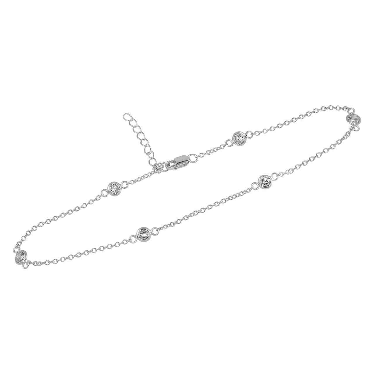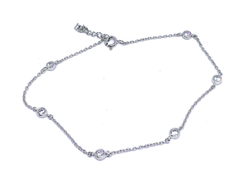A strand of six bezel set CZ stones will add some sparkle to your ankle. Highest quality .925 sterling silver with added rhodium plating for long lasting shine and durability. 9 1/2" chain with 1" extension.