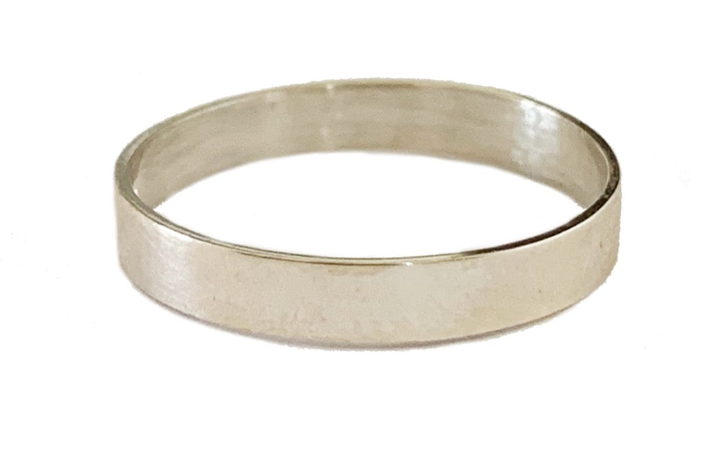This 3mm is wide with a smooth inside, super flat, very comfortable, and simply elegant! The perfect ring for wearing alone or stacking with braids or bees.