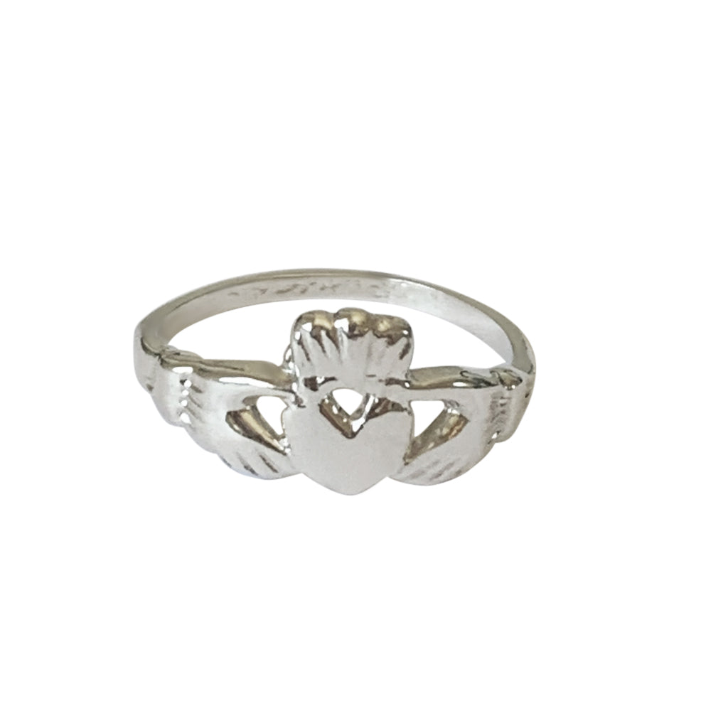 The Claddagh: the crown represents loyalty, the heart represents love, and the hands represent friendship. It is widely known as a symbol for great friendship. This ancient Gaelic design is also used in engagement rings and in traditional wedding rings for the irish. If worn on the right hand (toe) with the heart facing out it means you are single, facing in means you are dating someone. If worn on the left hand (or toe) with the heart facing out it means you are engaged and facing in you are married. The word is commonly pronounced without the gaelic touch as [klad-uh].
