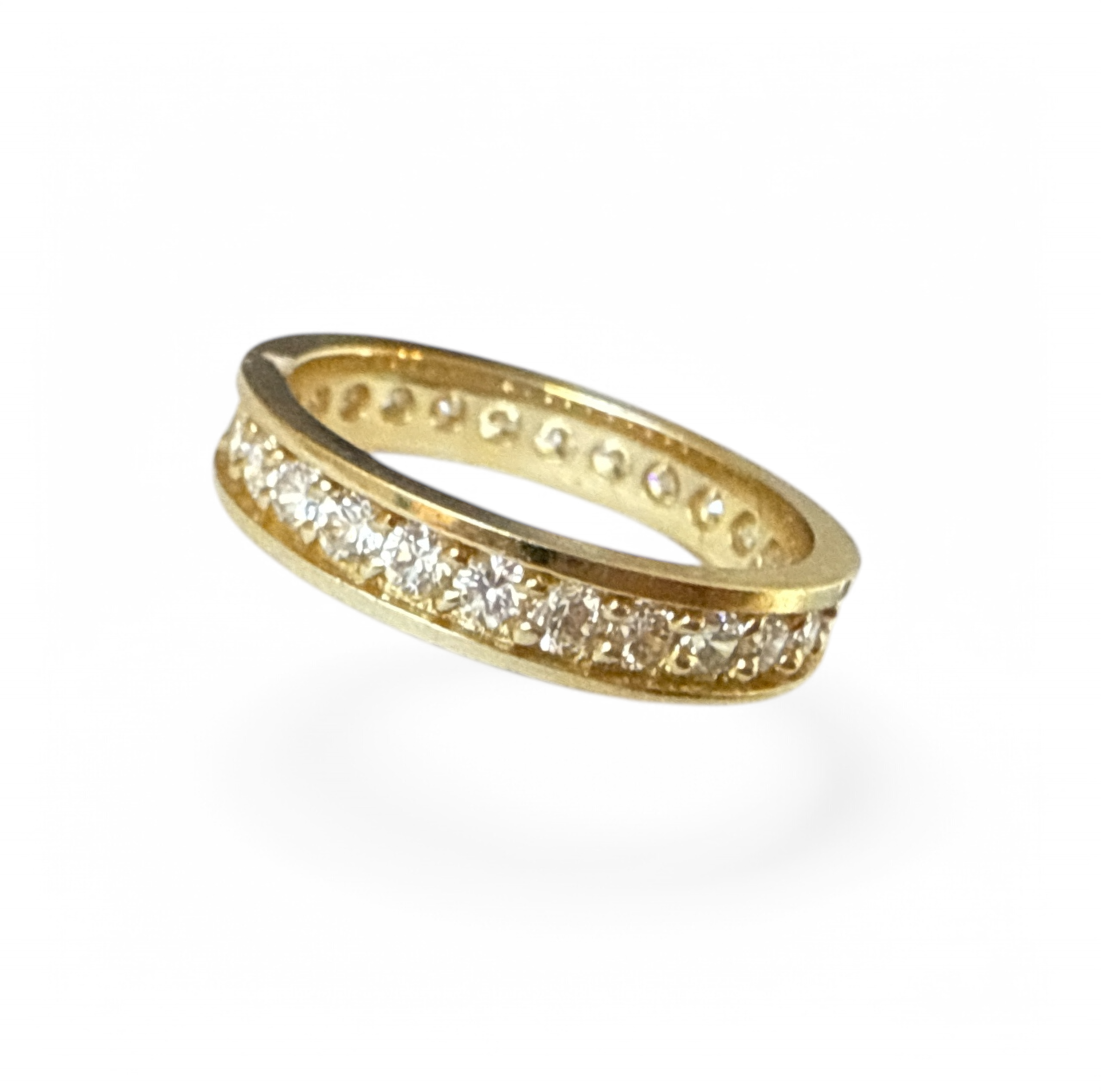If diamonds are a girl's best friend, stunning clear cubic zirconiumis her best friend's cousin! .925 Sterling Silver CZ or 14k Gold Eternity Band will fool just about anyone into thinking that you spent a bundle on this ring for only a fraction of what diamonds would cost. Also makes an awesome look with a matching toe ring!