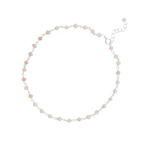9.5" sterling silver anklet features 1" extension and 2.6mm x 3.3mm pink opal beads.
