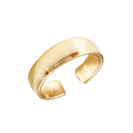 Woohoo! We are so excited about this ring because we have been wearing it and it's amazing! Adjustable. smooth, and 5mm wide in the best gold fill; will not change color and has the great look of real gold. A great bold gold statement. Unisex - One size fits all.