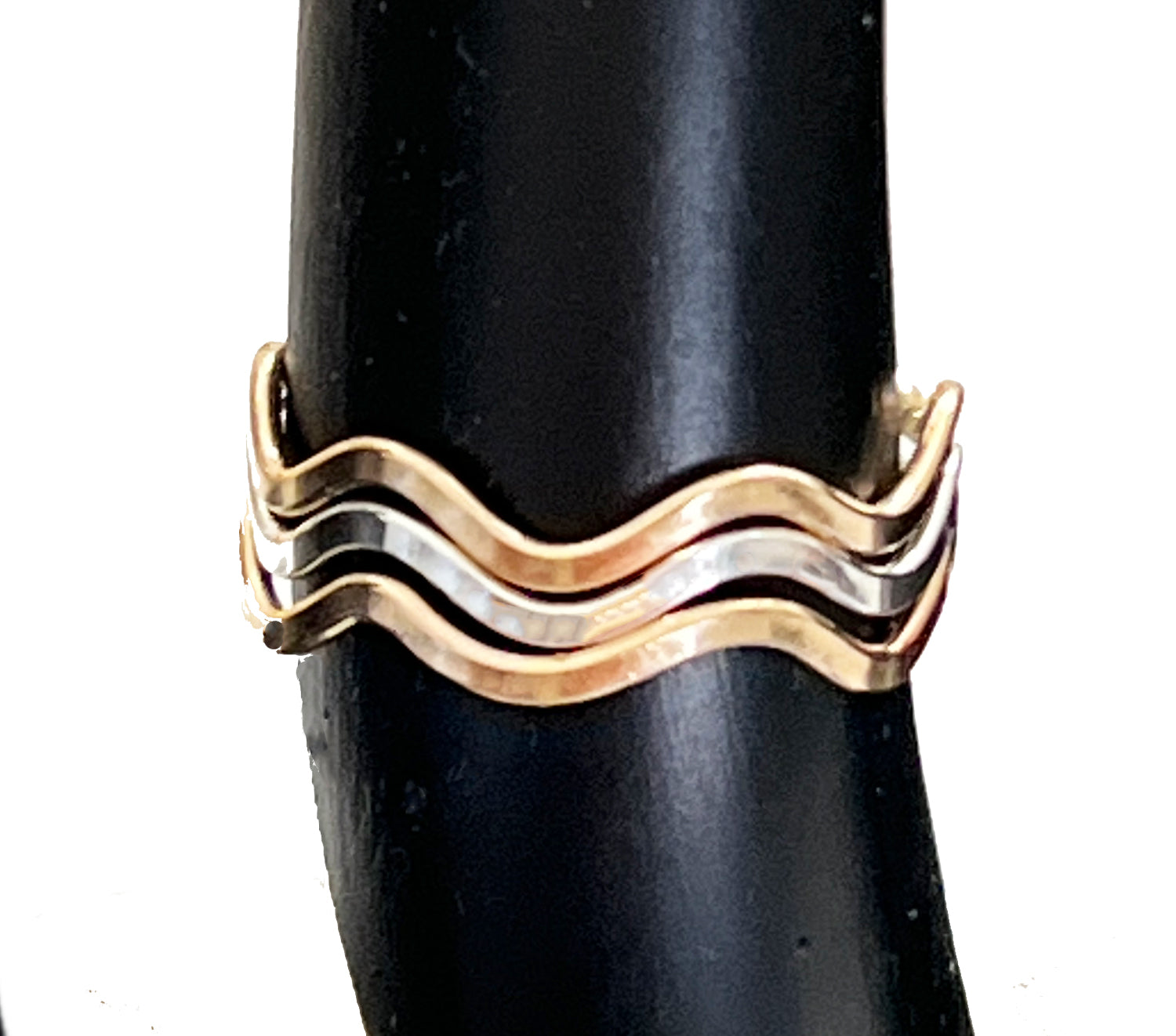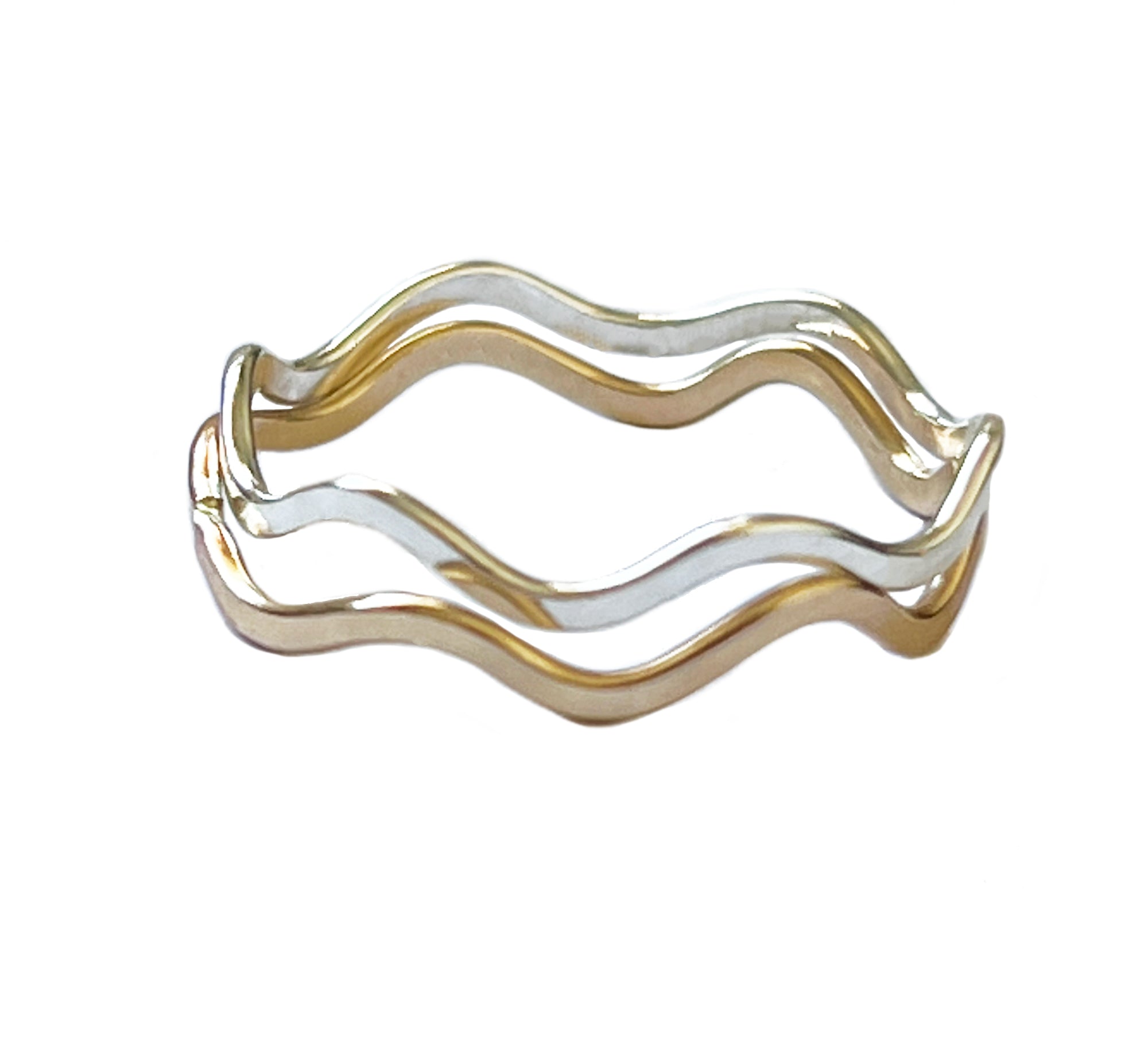 This thin but durable band has small ripples, perfect for stacking. Super durable and affordable 14k gold fill! 1mm wide with a smooth inside perfect for stacking or wear as a knuckle ring. Also available as a stack and in sterling silver.