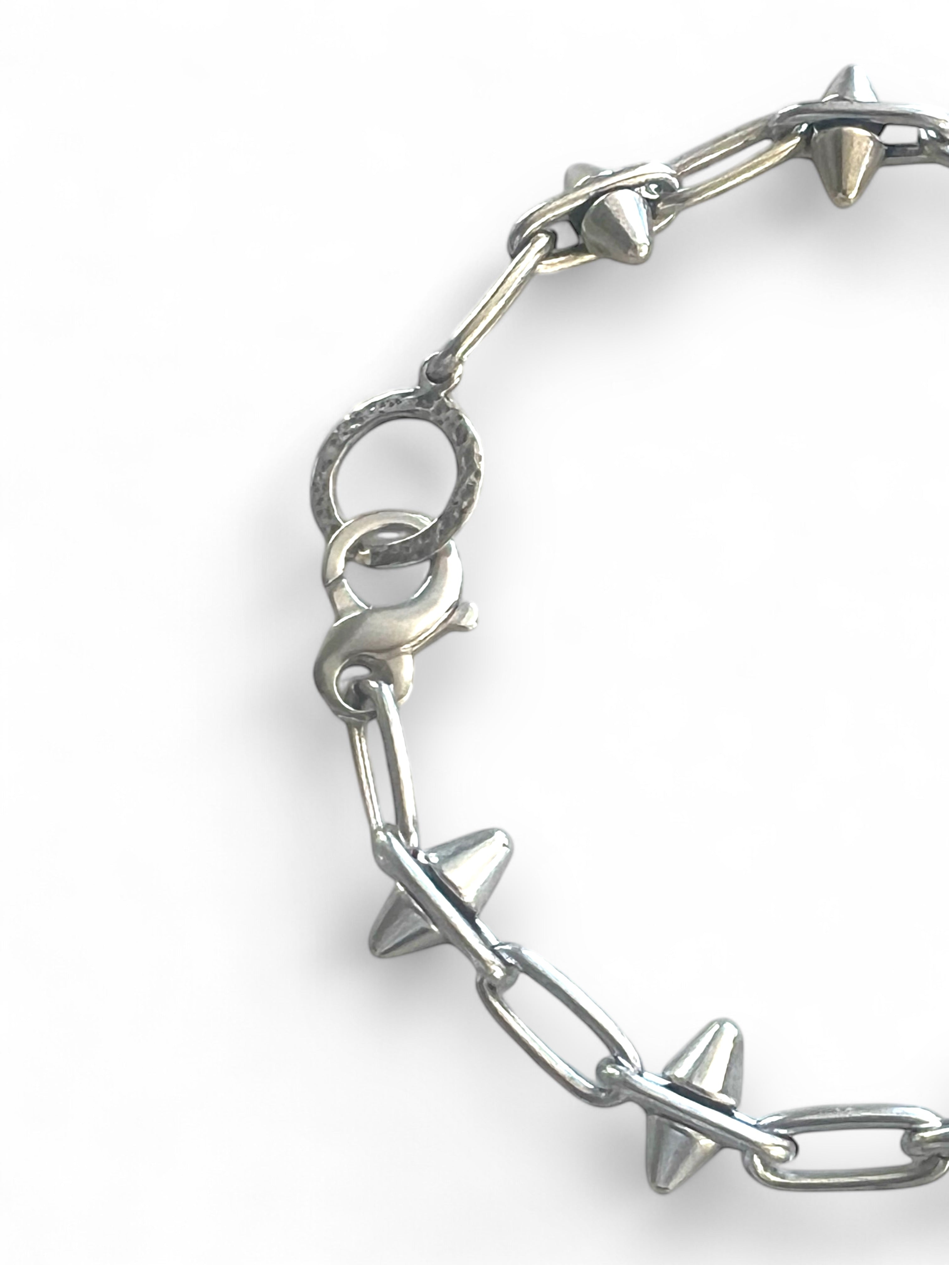 Rounded spikes on a 11-inch chain. Made in the USA. 11" in length made in antique silver with a sterling silver lobster clasp.