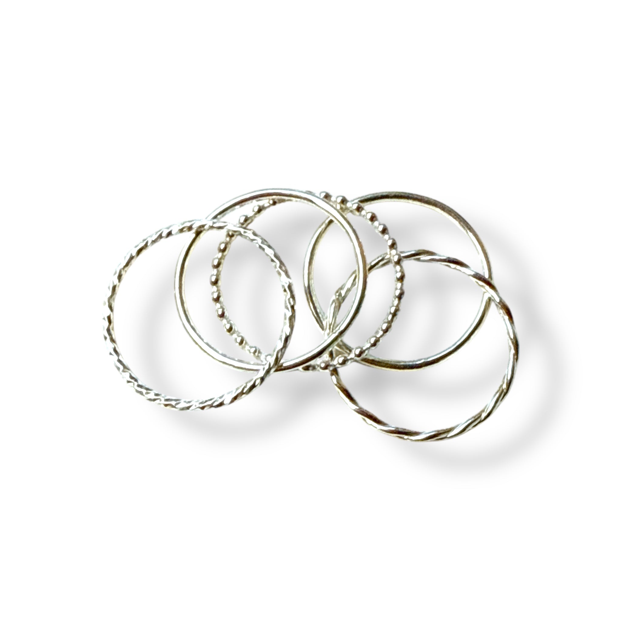 SET OF FIVE TOE RINGS - Two 1mm skinny bands, one Skinny Braid, one Mini Flat Bee Band, and one Sparkle. Your choice of .925 sterling silver or gold fill. Mix and match on fingers and toes, or wide stack them for an awesome look.