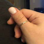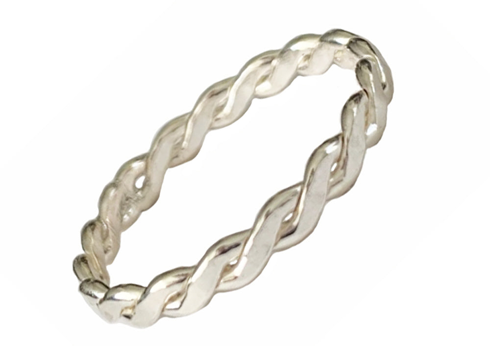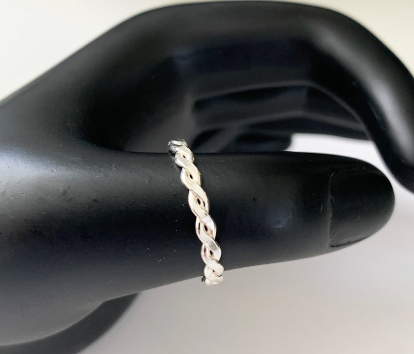 Let's do the twist! Fun and simple, a medium gauge braided ring, for thumb or finger ring in whole and half sizes 1 - 12. Highest quality .925 sterling silver will not peel, chip or fade. Store properly when not wearing. Also available in gold fill.