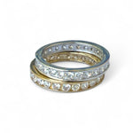 If diamonds are a girl's best friend, stunning clear cubic zirconiumis her best friend's cousin! .925 Sterling Silver CZ or 14k Gold Eternity Band will fool just about anyone into thinking that you spent a bundle on this ring for only a fraction of what diamonds would cost. Also makes an awesome look with a matching toe ring!