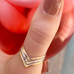 NEW! An easy fit, wider thumb or finger ring, perfect in mixed metals and goes well with all your jewelry. Three bands: two high quality 14K gold fill bands flank one .925 sterling silver; will not fade, chip or change color. Looks great on the middle and index finger! Unisex in small to large sizes 5 - 12, ring is appropriate for women and men alike.