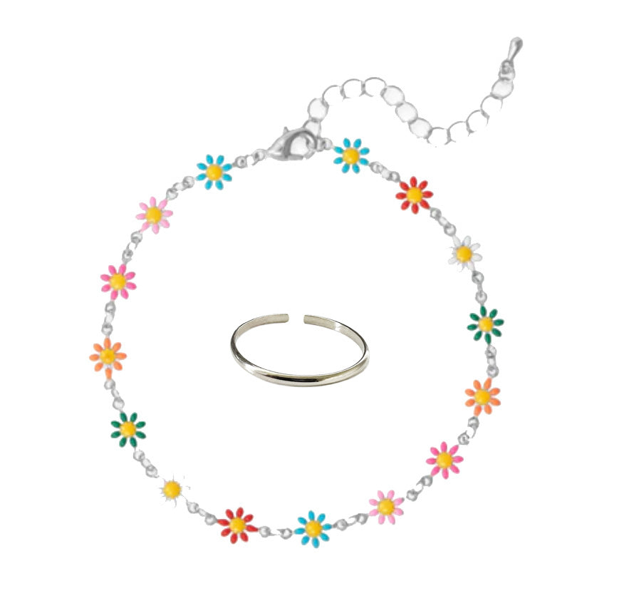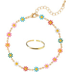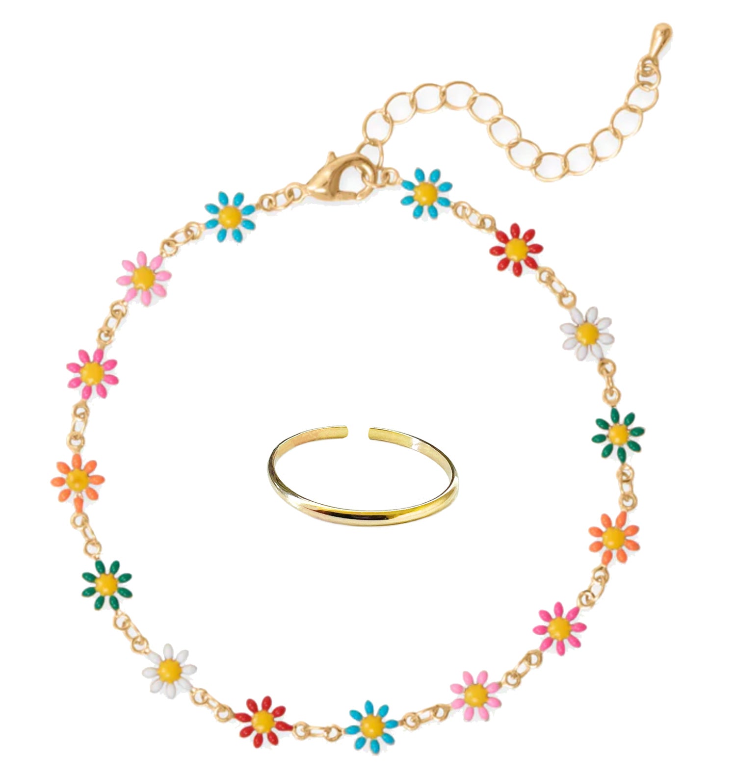 Daisy Colorful Anklet and 2mm Band Toe Ring Gift Set