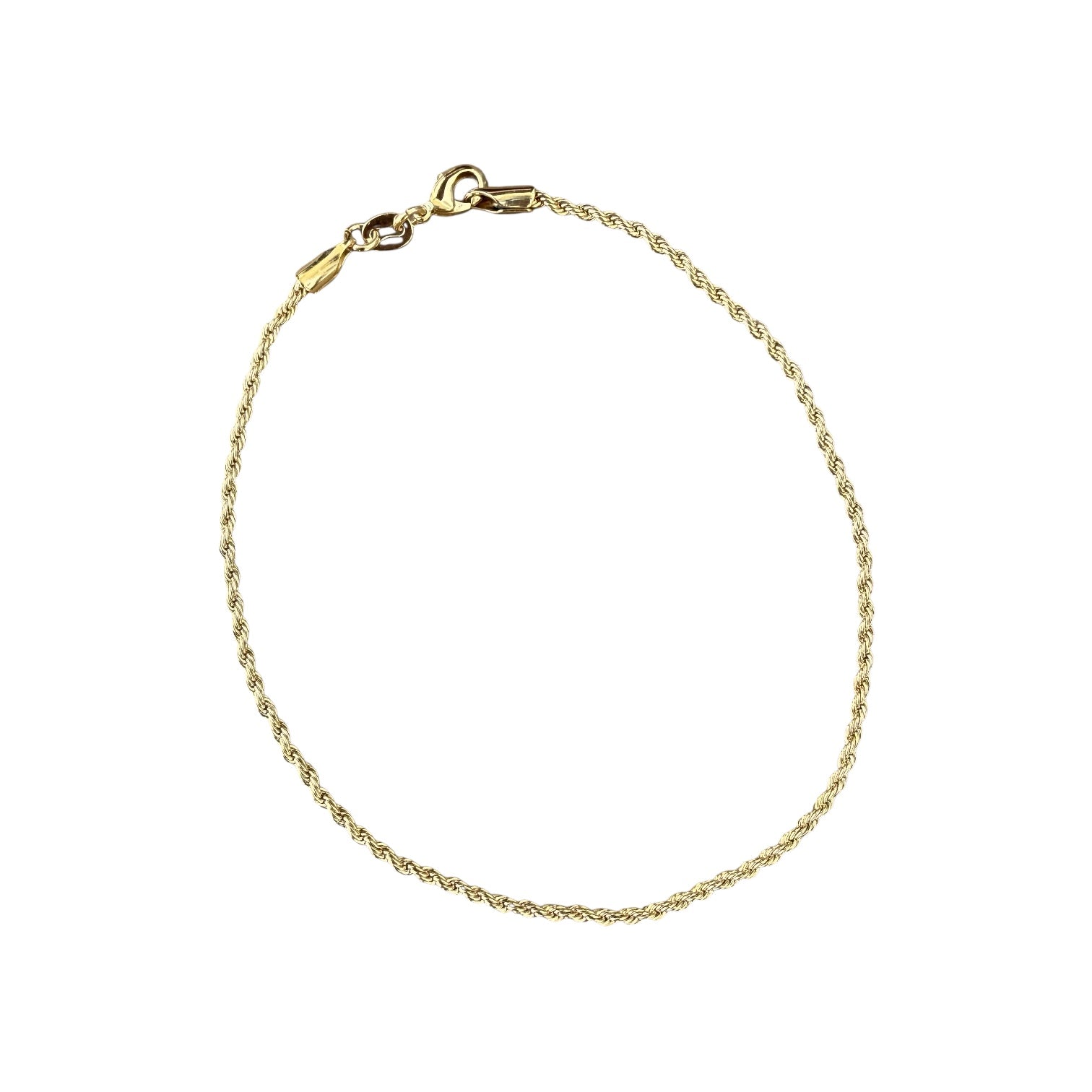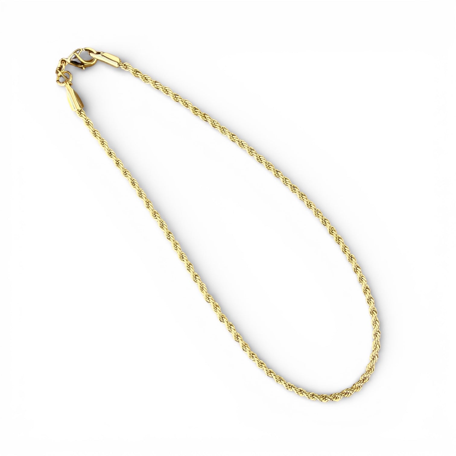 Crafted with a timeless twisted design, this 9-inch 18K gold fill 2mm rope chain anklet features a secure lobster clasp that keeps it perfectly in place all day and night. The lustrous gold finish resists tarnishing, making it an ideal choice for year-round wear—whether you're heading to the beach, office, or evening out. Delicate yet durable, this classic anklet pairs effortlessly with any outfit and becomes an instant wardrobe essential.